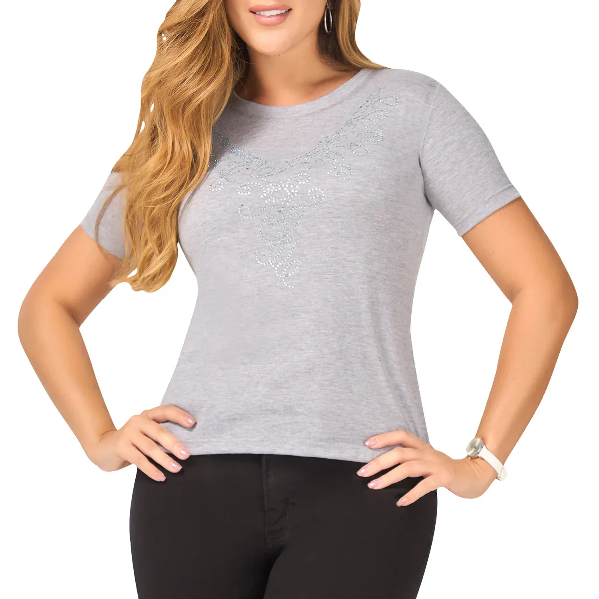 SKU: ZW01120. Comodidad, frescura y mucho estilo en una prenda ¡Perfecta para ti! Blusa casual con detalle de piedras decorativas. Elaborada en 65% poliéster, 35% algodón.