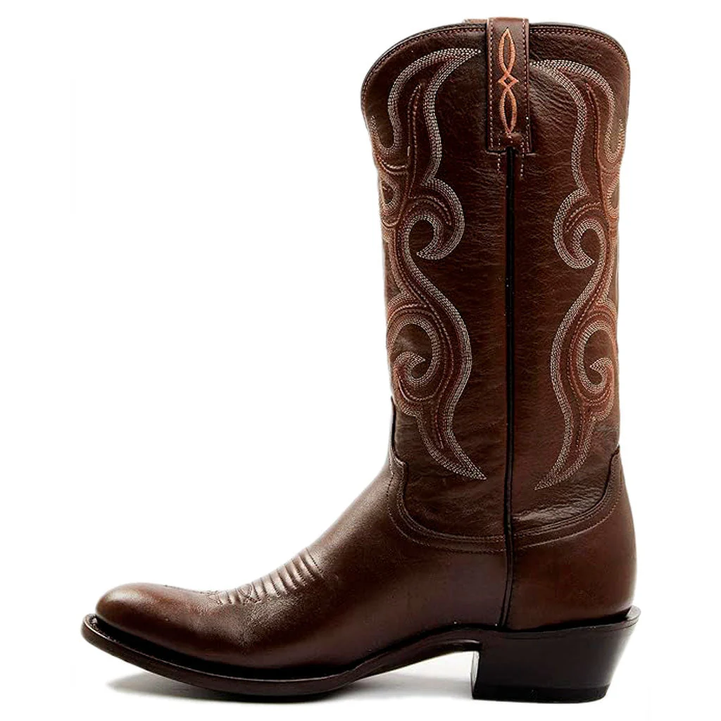 - Nick es una bota para hombre de a caballo construida con piel de becerro lisa. Una horma exclusiva de Lucchese y un bordado tradicional en el tubo ofrece un estilo que se puede usar para trabajar o para salir.