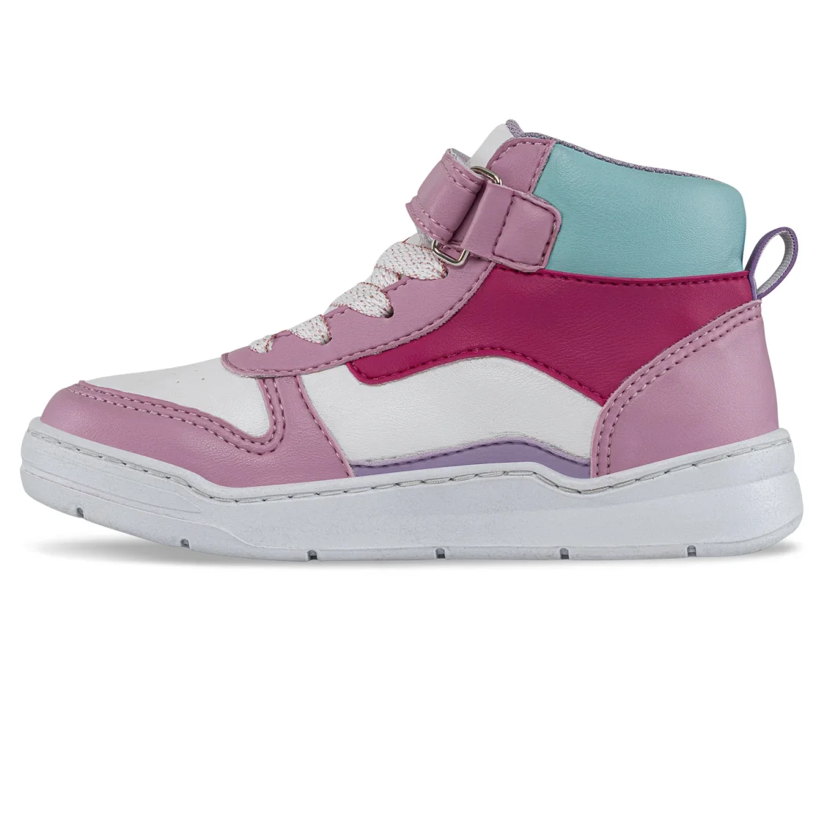 SKU: DO42042. Zapatos ideales para niños que brindan comodidad superior y aseguran que tus pequeños estén listos para correr y saltar durante todo el día . Tenis casuales tipo botín con ajuste en velcro y cosidos para mayor resistencia. Elaborados en sintético, cordón con hilos metalizados, forro textil acolchado y suela en PVC.