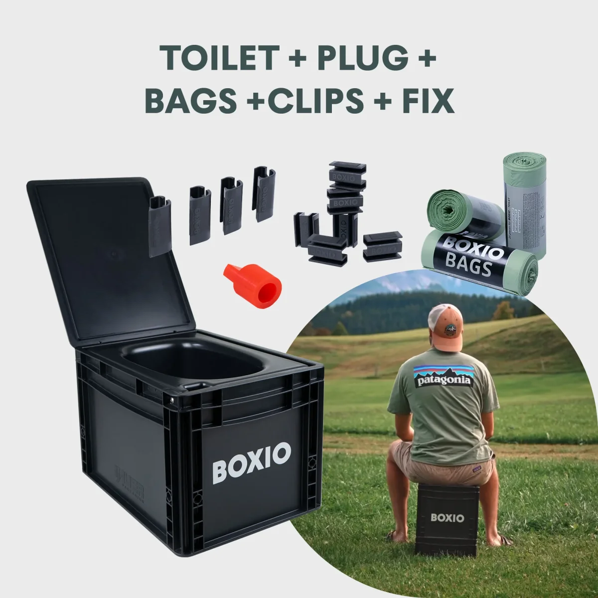 Su cuarto de baño compacto y robusto en sólo dos Euroboxes. Con el completo paquete BOXIO, siempre tendrá consigo todo lo que necesita y podrá satisfacer sus necesidades en cualquier momento y lugar sin electricidad.