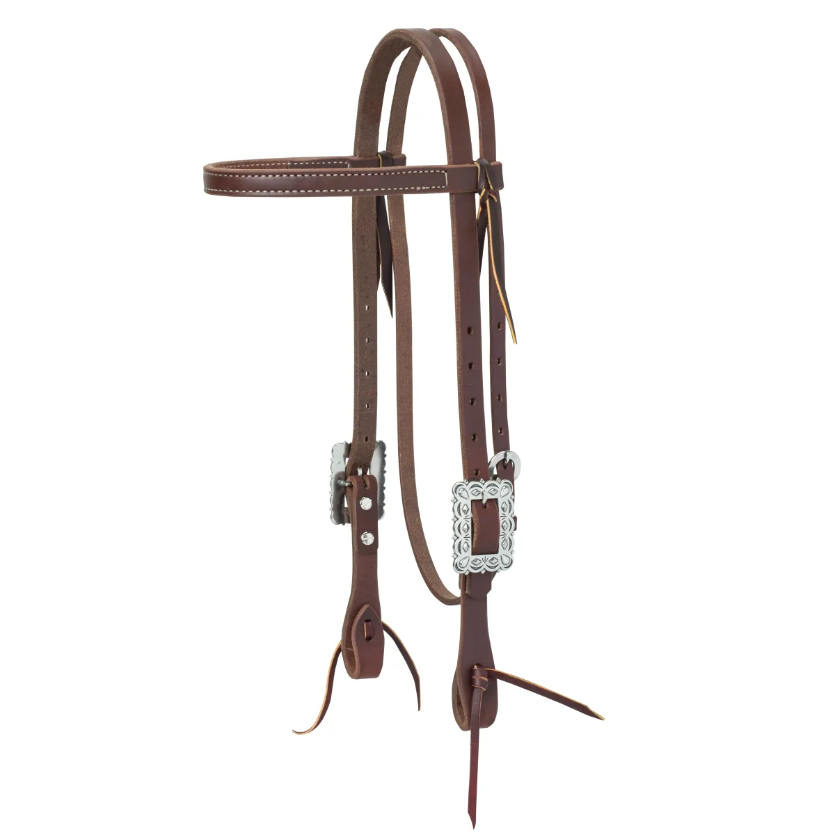• Cabezada con hebillas festoneadas grabadas en relieve con un diseño nativo del suroeste que eleva este accesorio de trabajo a un nivel superior.