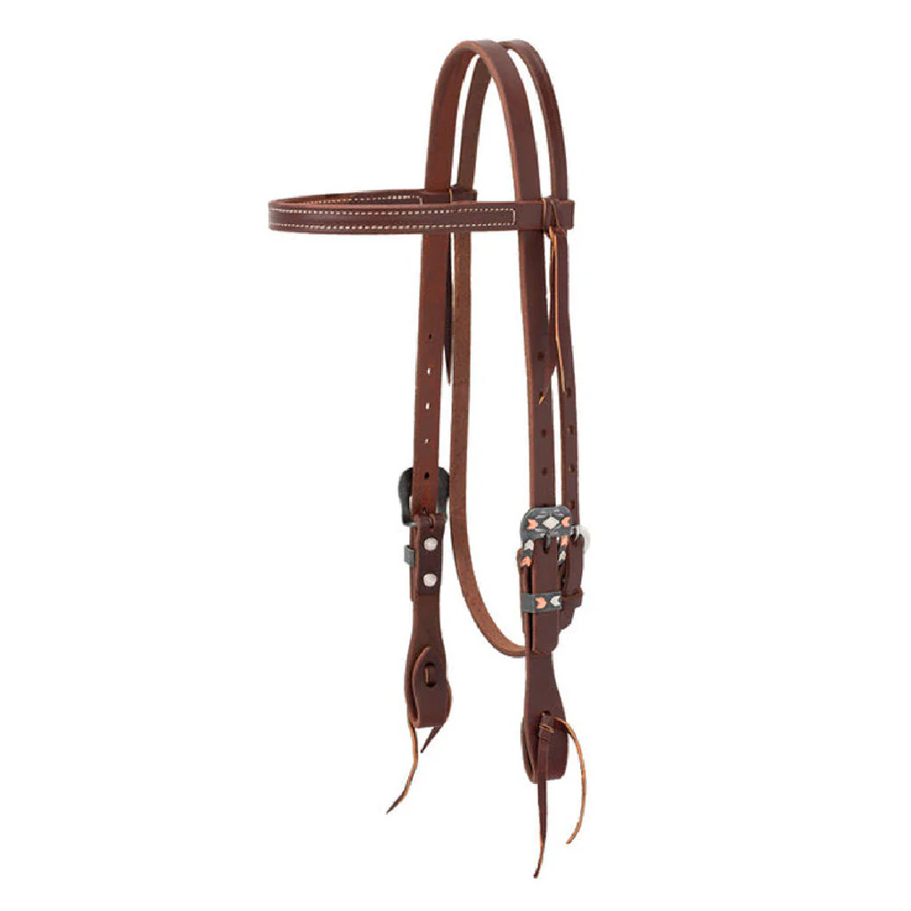 - Cabezada de caballo con hebillas festoneadas grabadas y en relieve con un diseño nativo del suroeste que lleva este equipo de trabajo al siguiente nivel.