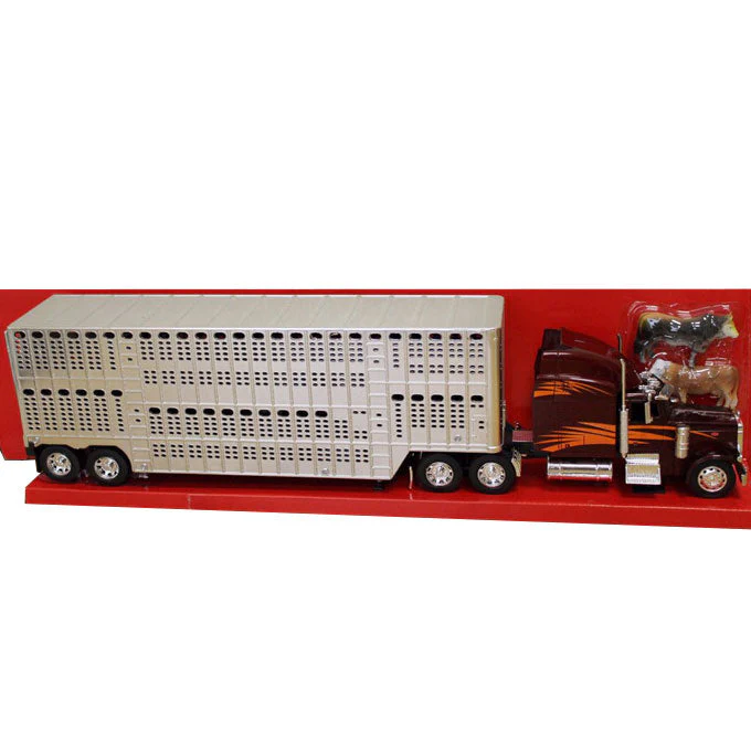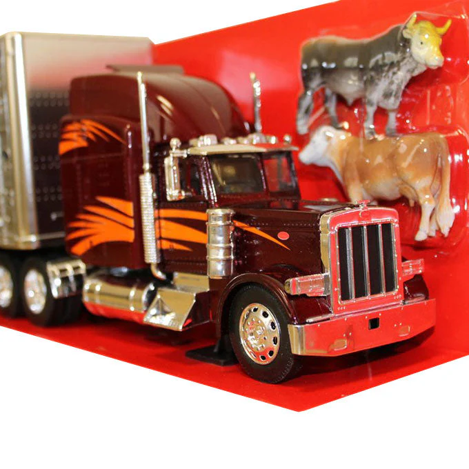 Camion Peterbilt Rojo Con Remolque Ganadero