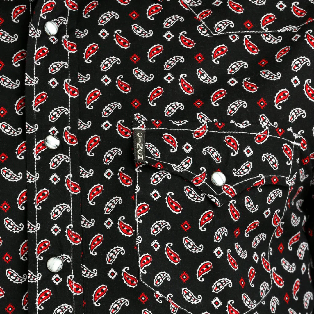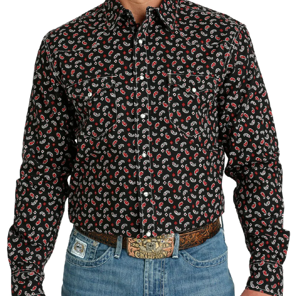 - Camisa negra, con estampados en rojo y blanco