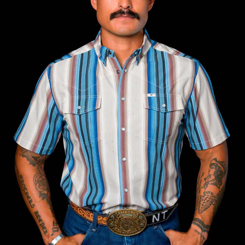 Lleva la esencia del campo a tu vestimenta diaria con la Camisa Ferrell. Esta pieza de manga corta redefine el concepto de «Vaquero de Gala» para los días de calor, con una paleta de colores que evoca el cielo y la tierra, esta camisa de manga corta se convierte en un básico esencial para quienes viven la tradición western con un toque moderno.