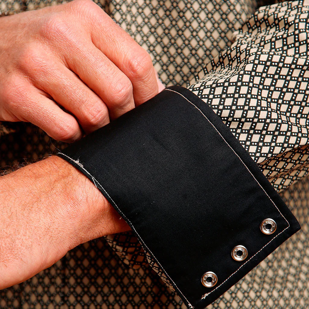 • Camisa color beige, con detalles en negro.