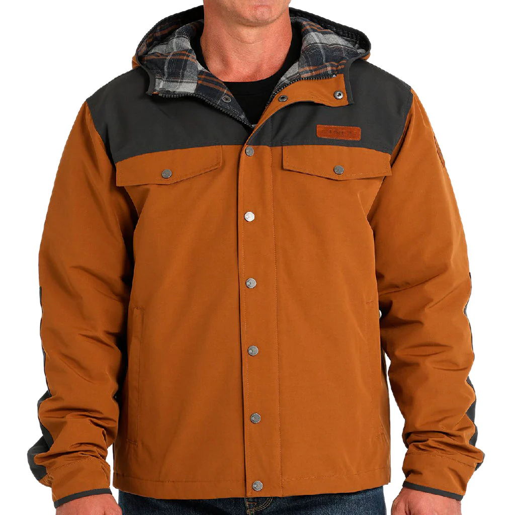 Este abrigo de lona de polialgodón resistente de CINCH está repleto de detalles y puede con todo lo que le propongas. La construcción en bloques de color marrón presenta un forro de sarga de poliéster cepillado, puños con broches a presión, solapa cortavientos, broches de peltre, un parche de cuero con el logotipo de CINCH y un acabado resistente al agua duradero (DWR) para protegerte de los cambios climáticos.