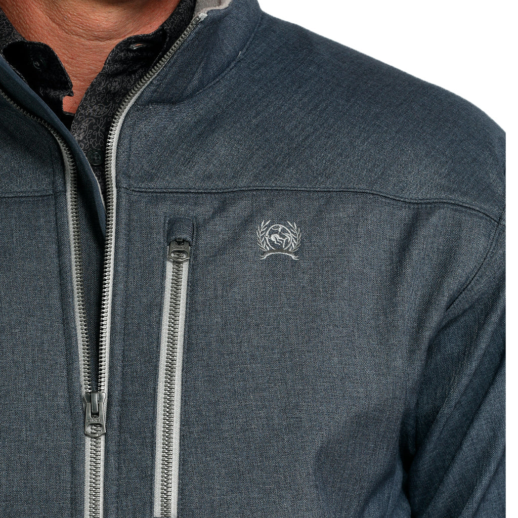 Te presentamos la nueva chaqueta favorita, elástica y diseñada para portar tu arma de forma segura. Con dos bolsillos interiores ocultos y una funda con cierre de velcro, esta elegante chaqueta azul marino de poliéster y spandex con patrón de espiga cuenta con cremalleras Metaluxe, puños con broches, bolsillos exteriores, el logotipo CINCH bordado y un acabado repelente al agua duradero (DWR) que te protege del viento y la lluvia.