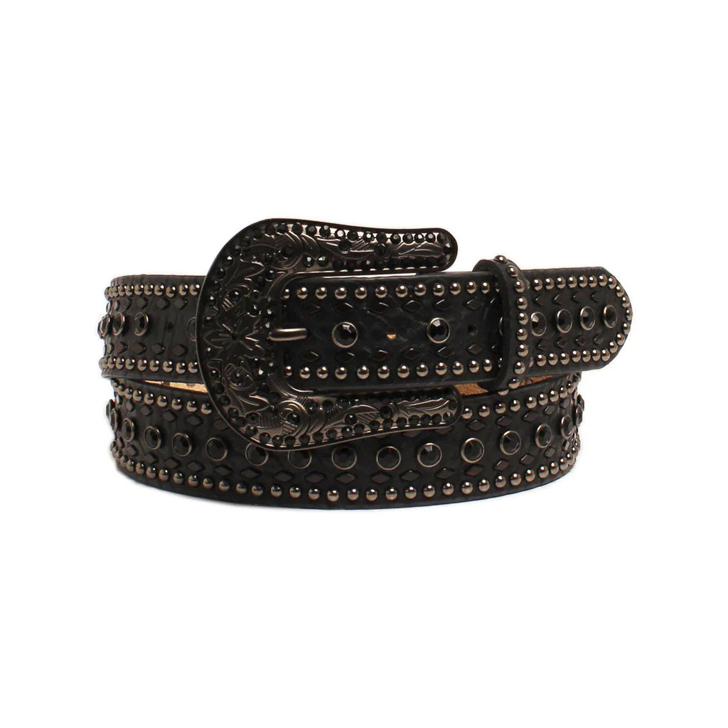 Los fajos Ariat son hechos en piel premium. Este cinto color negro con piedras y ancho de 1.5″ da un excelente look Western.