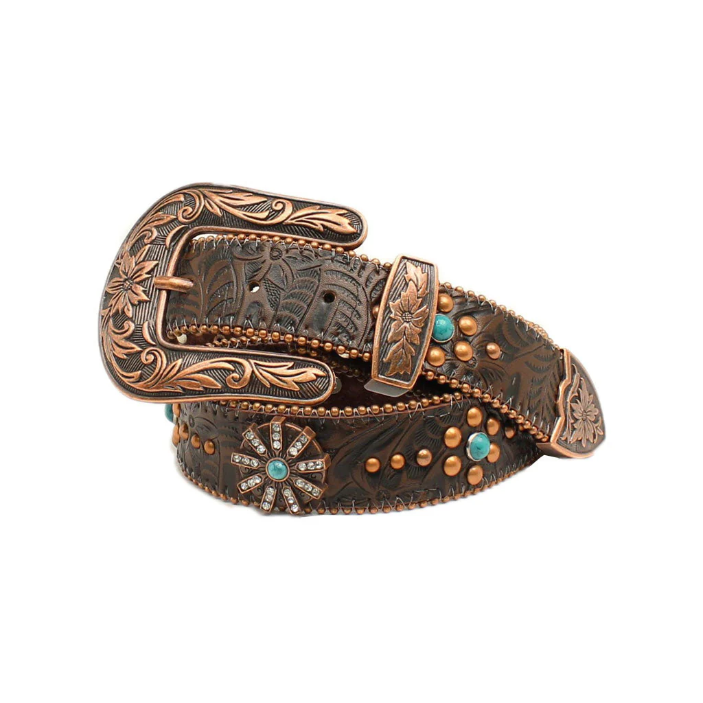Los fajos Ariat son hechos en piel premium. Este cinto color cafe con cincelado floral y ancho de 1.5″ da un excelente look Western.