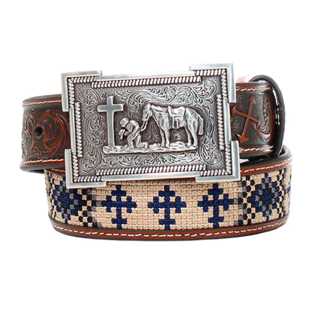 - Hebilla de cinturón cuadrada con Knelling Vaquero en cruz con caballo