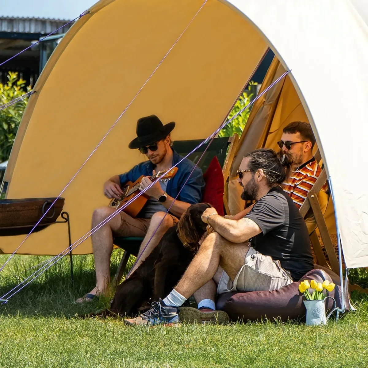 This is an excellent add-on for your Boutique Camping Classic Bell, Bell Plus, or Star Bell Tent. Whether your glamping goal is to add to, or, extend an already integrated porch canopy, this polycotton (285gsm/9oz) attachment will hook effortlessly onto the tent’s external a-frame spike, creating an extremely useful sheltered area to store belongings and host shaded magical moments under. Weighing less than 10kg, and with only one flexi-pole to erect, is very simple to assemble and easy to transport.