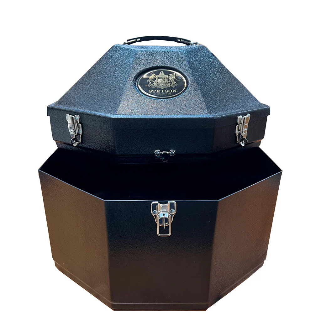 Con este estuche, mantienes dos texanas o sombreros mientras viajas, limpio y fuera de peligro manteniendo la horma de los sombreros con la base ajustable para cualquier talla.