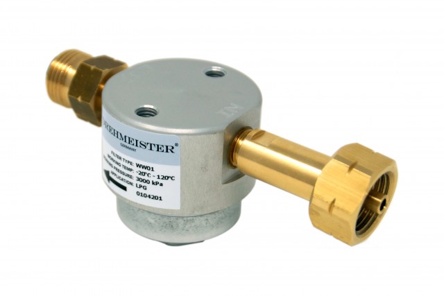 Conexión de filtro para botella de GLP, con este filtro nos aseguramos un perfecto funcionamiento de nuestros equipos de GLP, asegurando que el gas licuado entre en el vehiculo perfectamente limpio, alargando la vida de nuestros equipos de gas.