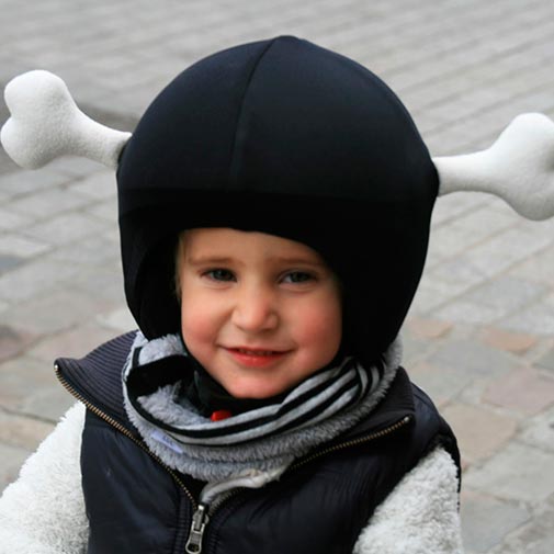 El producto viene en un blister totalmente personalizado de hueso, con imágenes del casco con su funda de hueso e instrucciones de uso.
