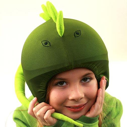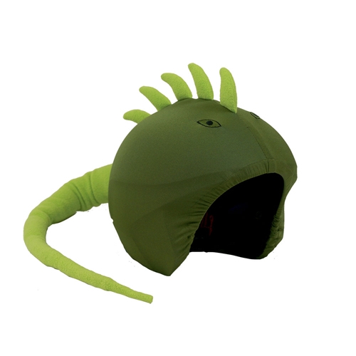 El producto viene en un blister personalizado de iguana, con imágenes del casco con la funda e instrucciones de uso.