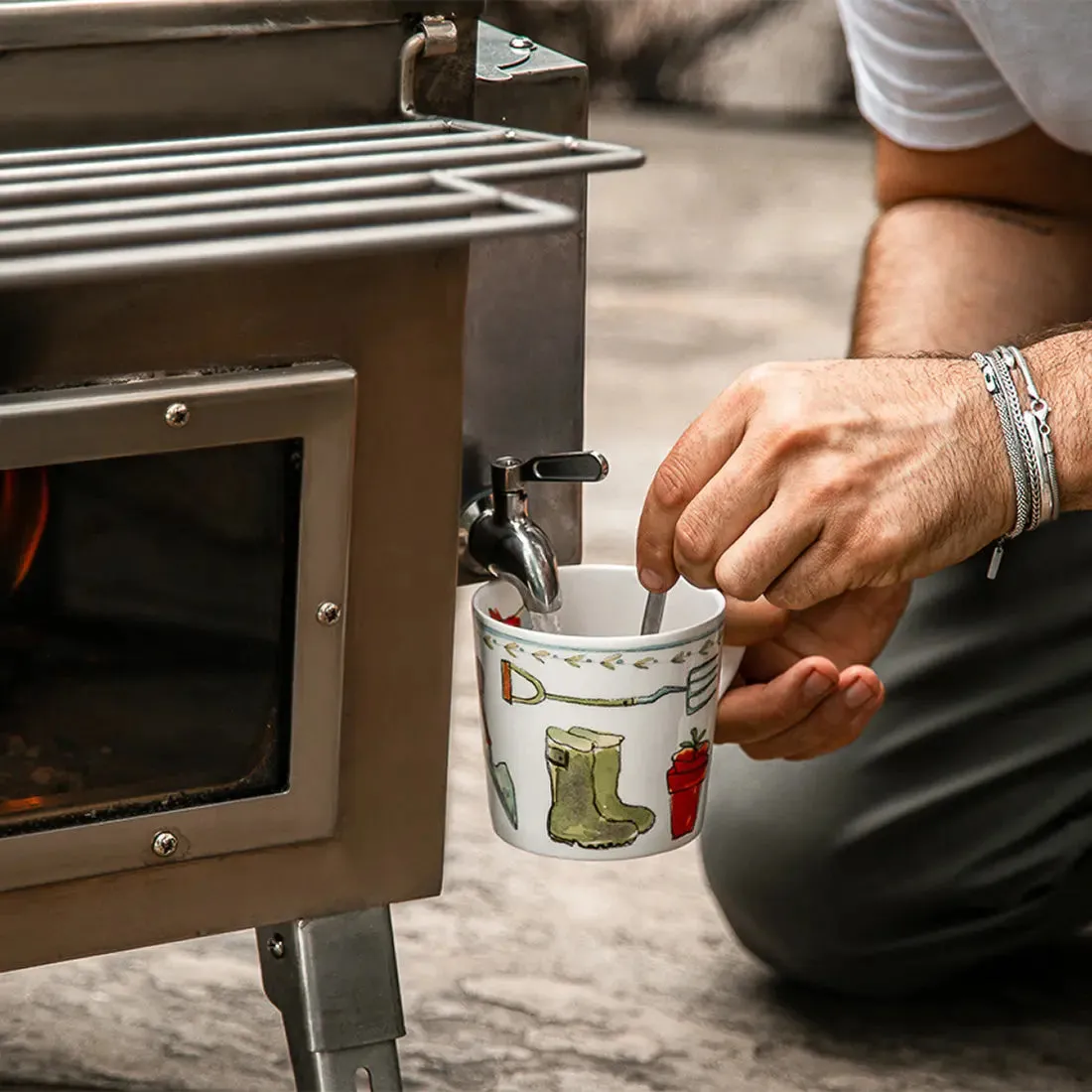 This savvy little kettle holds up to 4.5L of water, and reaches boiling point (100°c) within 25 minutes of being hooked on to your heated Original Pizza Oven or Pizza Oven Plus Stoves.