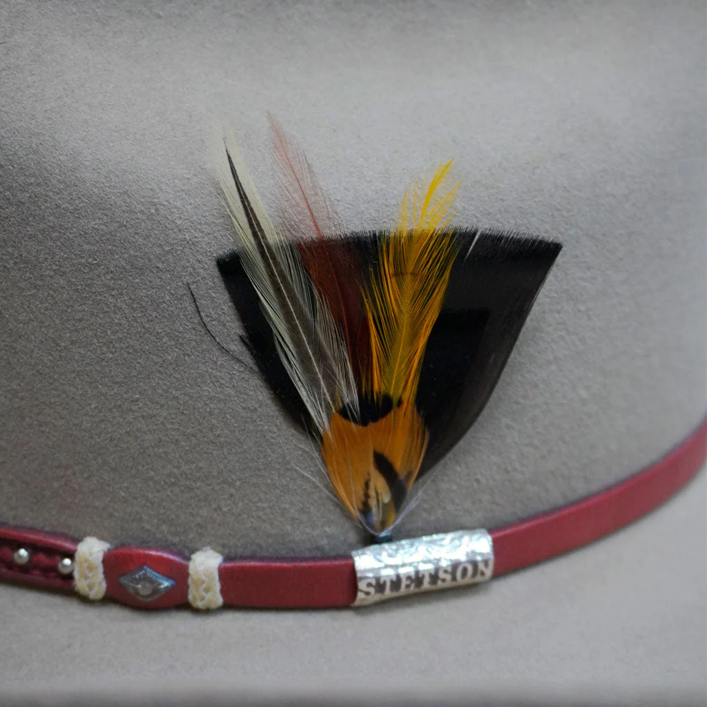• Pluma Negra Con Plumas Delgadas En Color Amarillo y Rojo