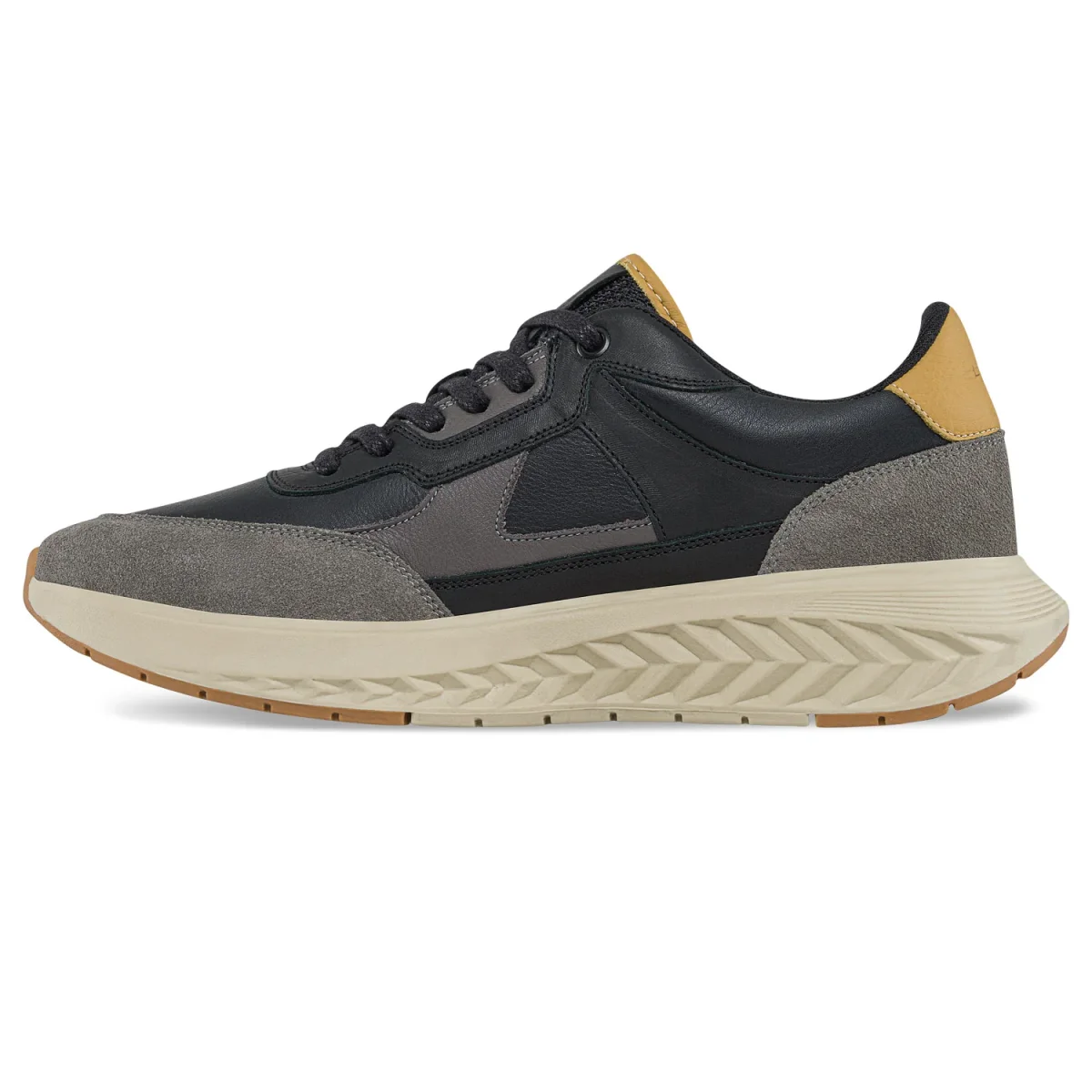Zapatos casual-deportivos con cordones encerados. Elaborados en cuero con acabados mate, piezas en gamuza y textil, costuras decorativas, forro textil acolchado, plantilla en sintético y suela en PVC bicolor con extra volumen.