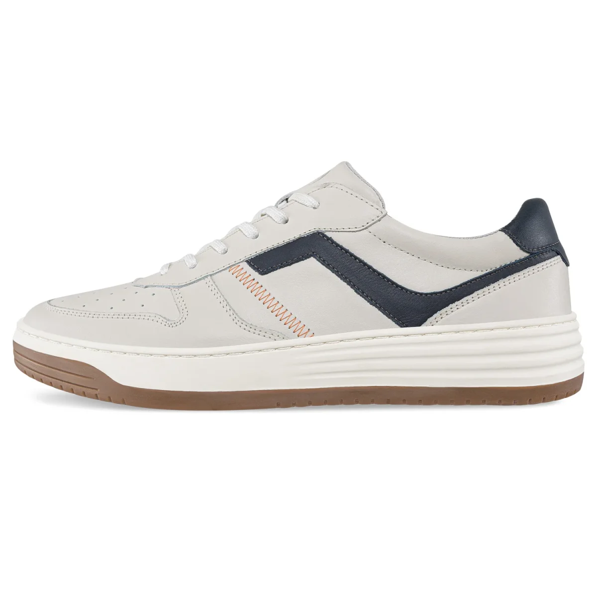 Zapatos casual-deportivos con cordones planos. Elaborados en cuero con piezas con repujadas y textura al tacto, costuras decorativas, microperforaciones, forro textil, plantilla en sintético y suela en caucho bicolor y costura de refuerzo.