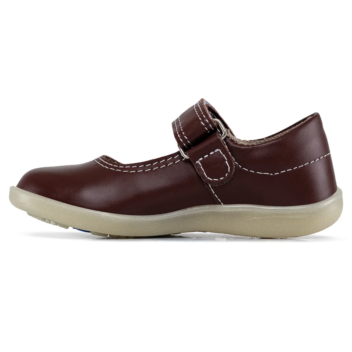 SKU: J600050. Excelentes para el colegio y ellas los amarán. Resistentes y hechos para durar. Zapatos colegiales casuales con diseño tipo mafalda y correa con velcro para mayor ajuste. Elaborados en cuero 100% hidrofugado que reduce la absorción del agua, forro textil y suela en PVC resistente al deslizamiento.