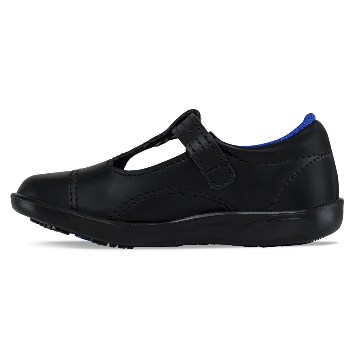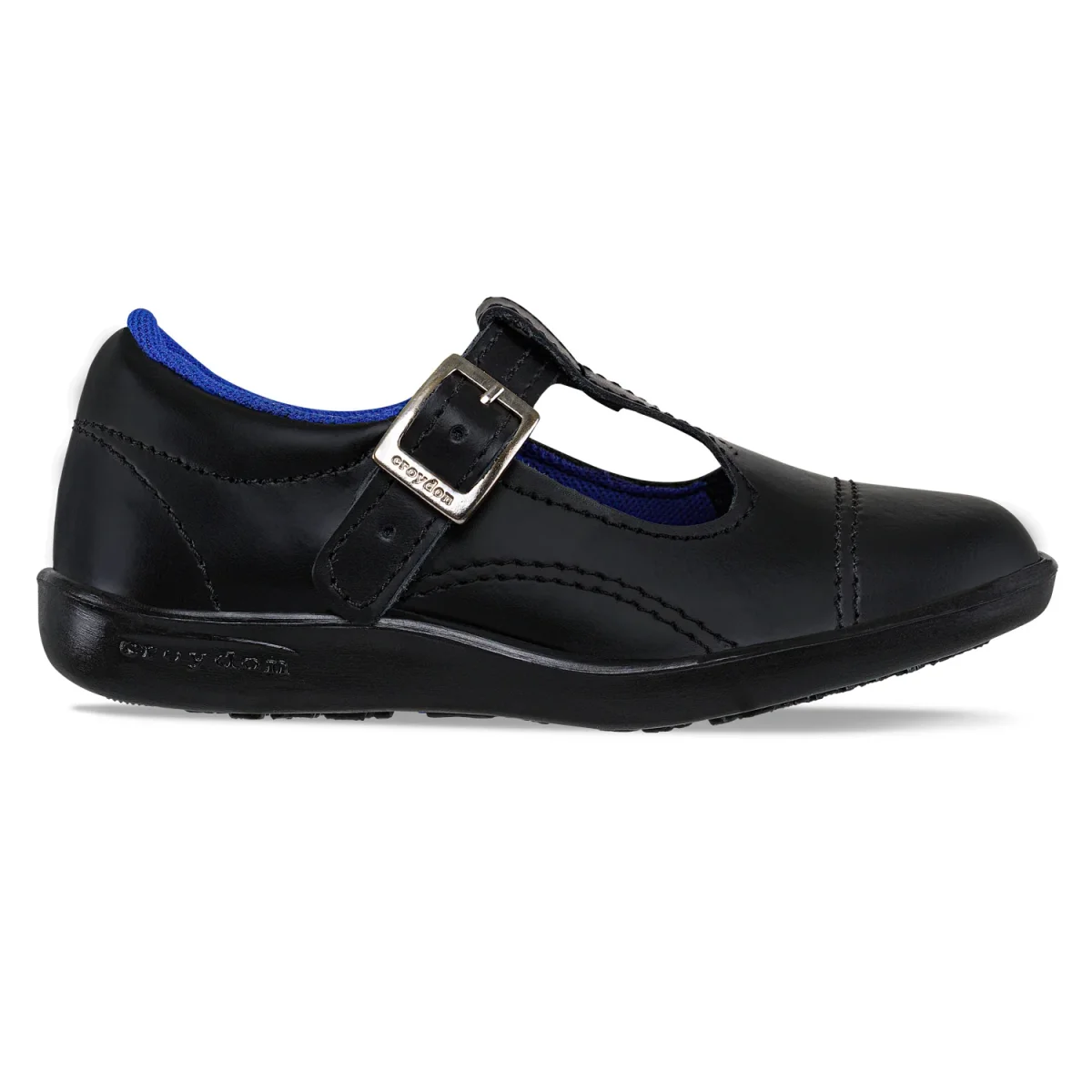 SKU: AJ15090. Excelentes para el colegio y ellas los amarán. Resistentes y hechos para durar. Zapatos colegiales casuales con diseño tipo mafalda y correa ajustable con hebilla. Elaborados en cuero 100% hidrofugado que reduce la absorción del agua, forro textil, plantilla en PU y suela en PVC .